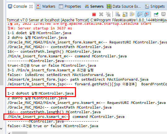 doPost 실행, command 에 담긴 /Min/m_insert_pro.ksmart_m