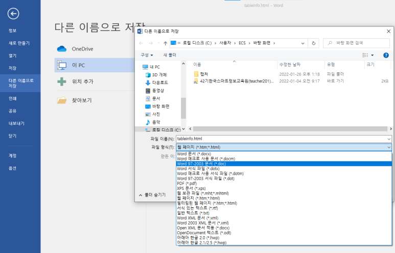 한글 파일로는 어렵다. word에서