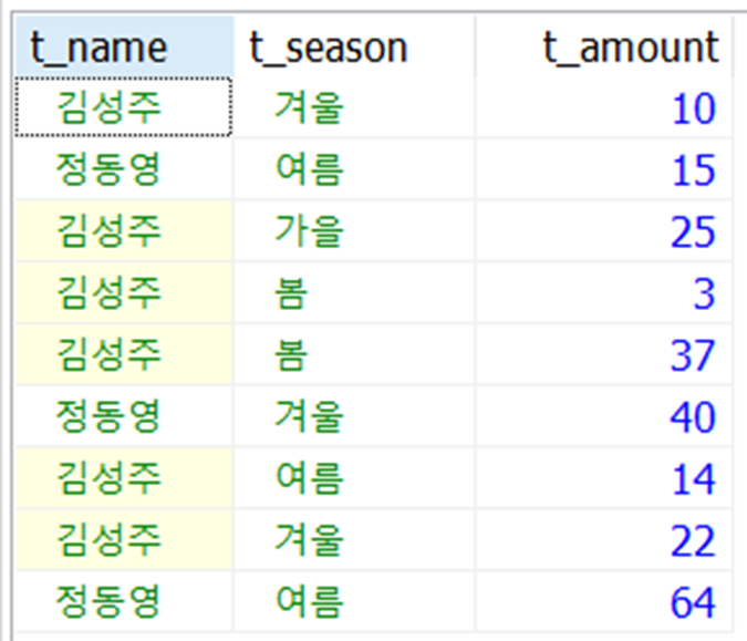 ,SUM(if(t.t_name = '김성주', t.t_amount,0)) AS '김성주'