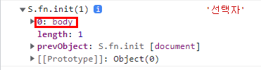 1. 선택자 -> 선택자와 일치하는 객체를 찾아 제이쿼리 객체에 배열로 저장