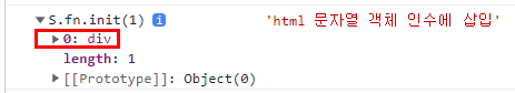 console.log($('<div>안녕하세요</div>'),'html 문자열 객체 인수에 삽입');