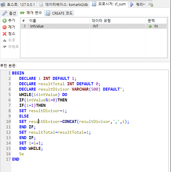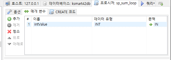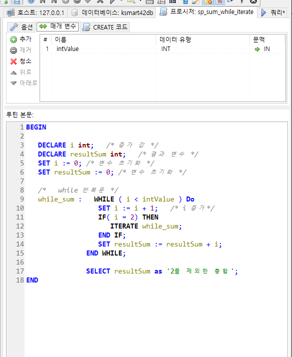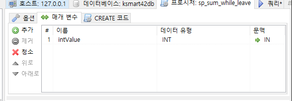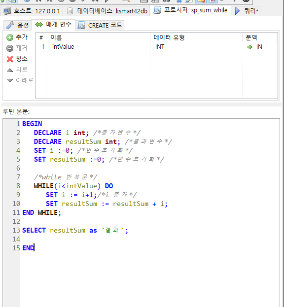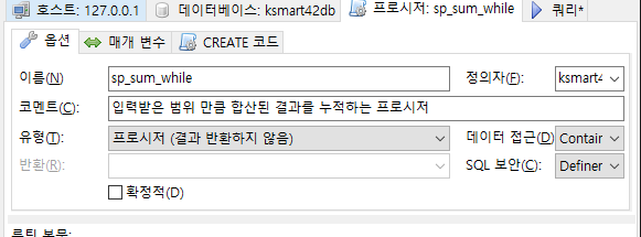 입력받은 범위 만큼 합산된 결과를 누적하는 프로시저