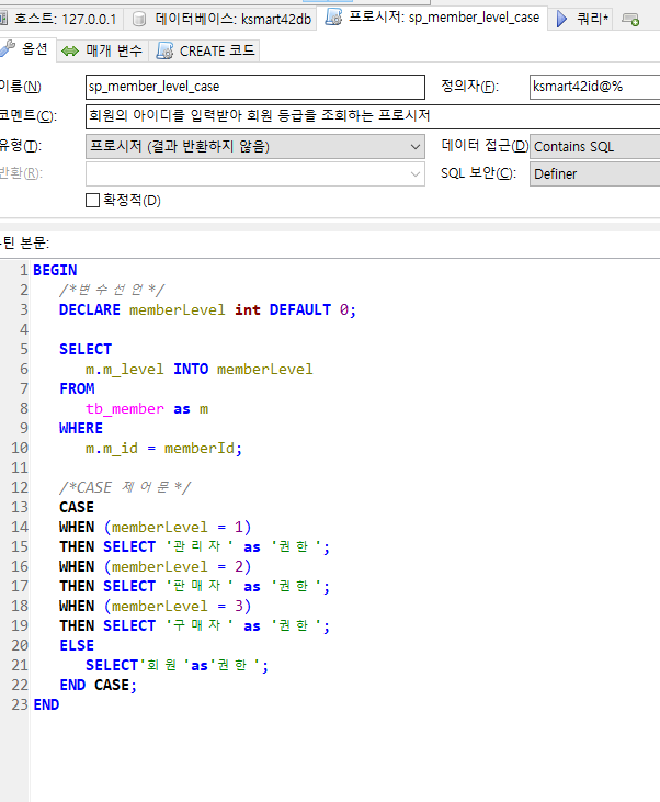 회원의 아이디를 입력받아 회원 등급을 조회하는 프로시저
