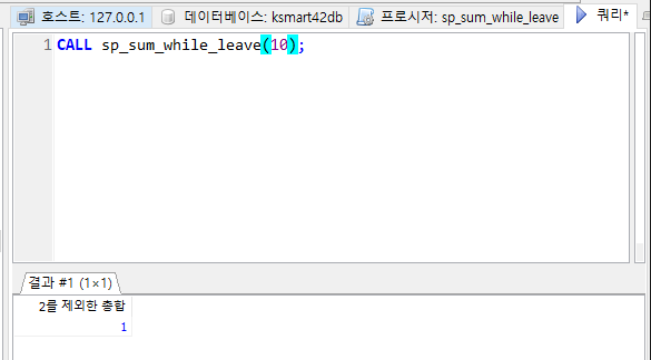 입력한 수 범위 중 2를 제외한 총합을 구하는 프로시저