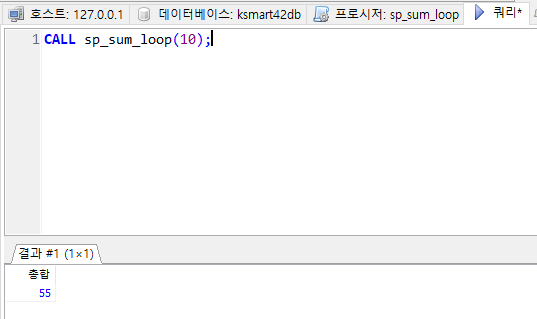 입력한 수 범위만큼 총합을 구하는 프로시저