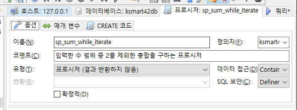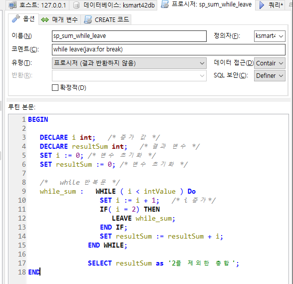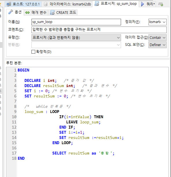 입력받은 범위 만큼 합산된 결과를 누적하는 프로시저