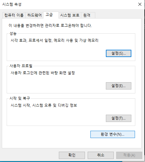 여기서 시스템 변수 Path를 설정할 수 있다.