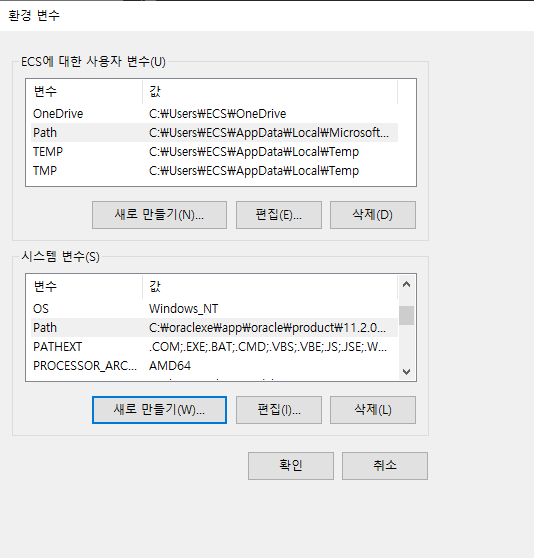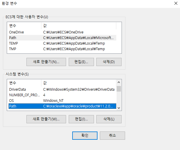 시스템 변수에서의 Path 편집