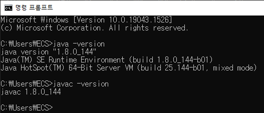 javac -version 실행 시 javac 1.8.0_144가 나왔다면 정상