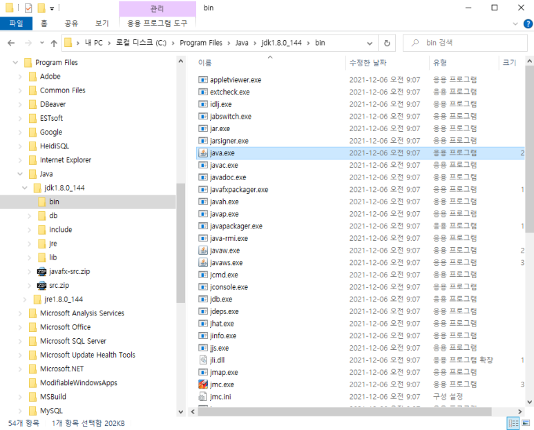 bin에 실행파일이 있기 때문에 환경변수를 설정 할 때 jdk 의 bin 디렉토리 경로까지 등록한다.