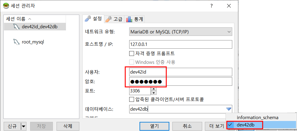 dev42db.* to 'dev42id'@'localhost' identified by 'dev42pw';