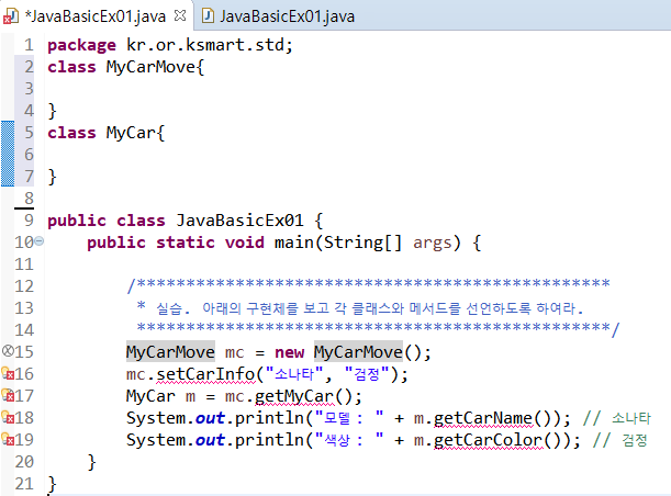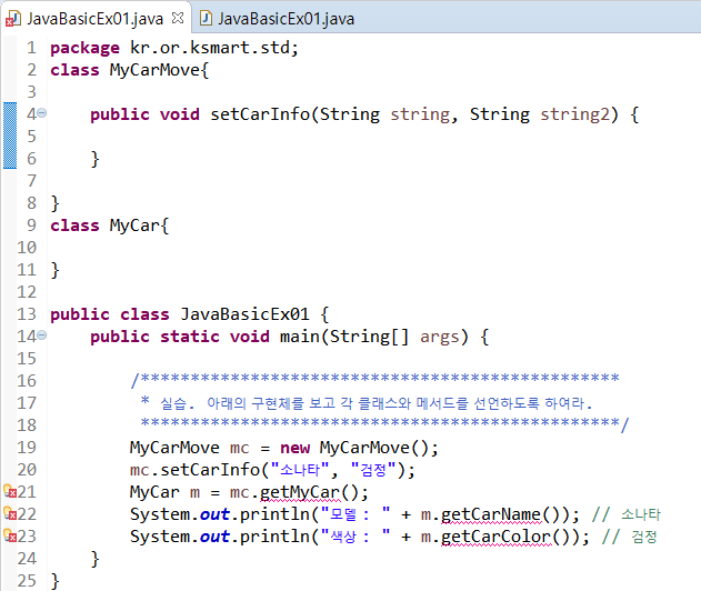21.MyCarMove 클래스 내에 getMyCar 메서드를 생성해준다.