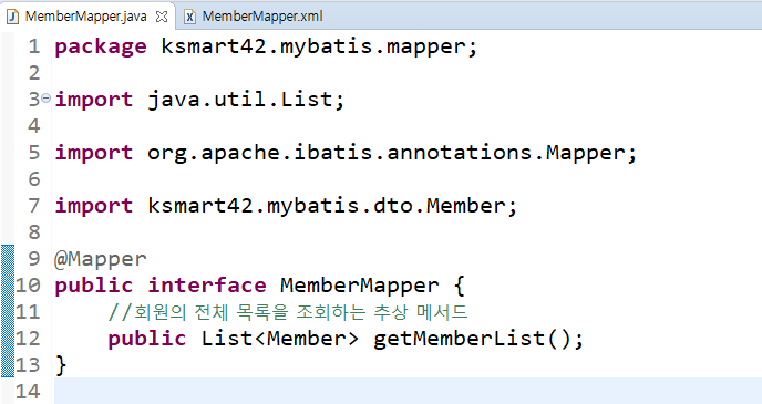 <mapper namespace="ksmart42.mybatis.mapper.MemberMapper">