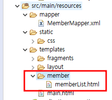 main.html 복사해서 memberList.html으로 이름 변경한다.