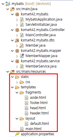 mybatis pom.xml에 thymeleaf library 추가해준다.