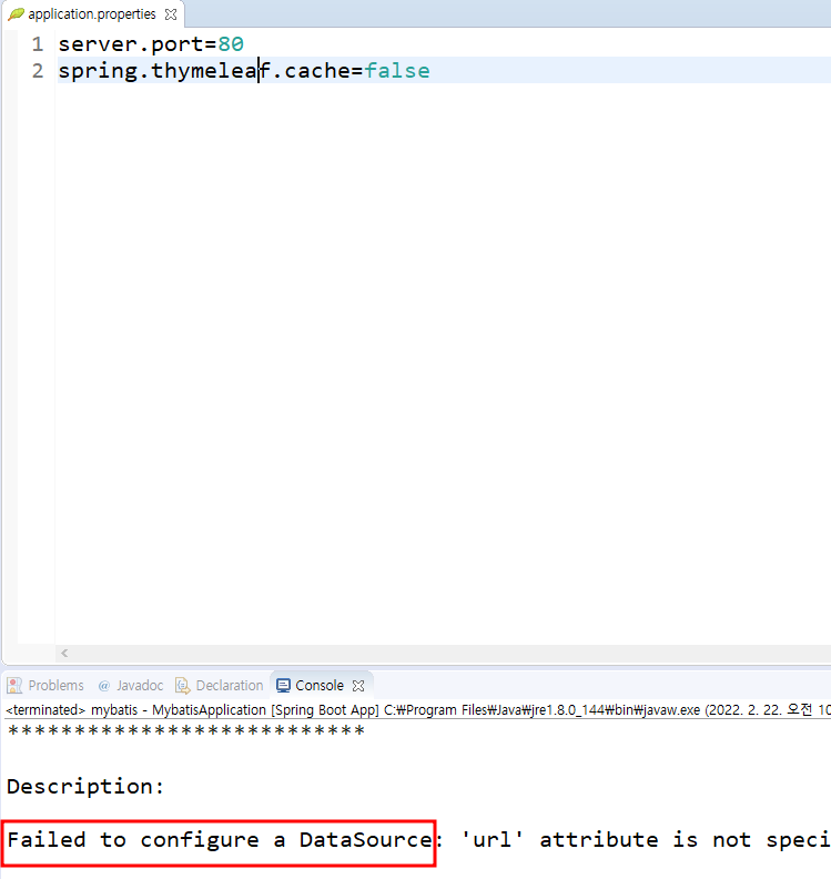 데이터소스에 대한 설정을 하지 않아서 dbcp 를 설정 할 수 없다.