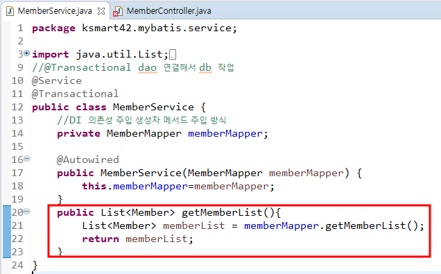 서비스에 있는 리스트 멤버 객체를 호출하면 객체의 주소를 반환해주기 위함.
