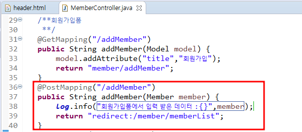 log.info("회원가입폼에서 입력 받은 데이터 :{}",member);
