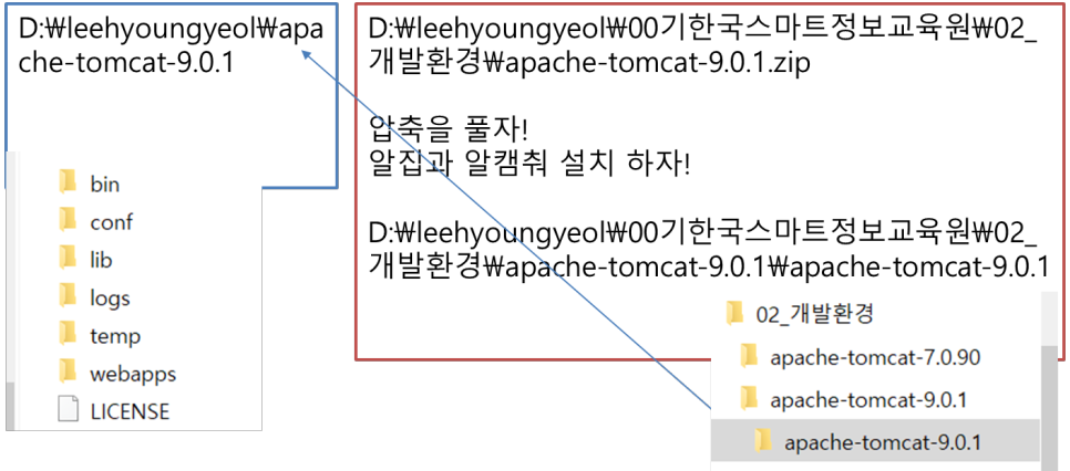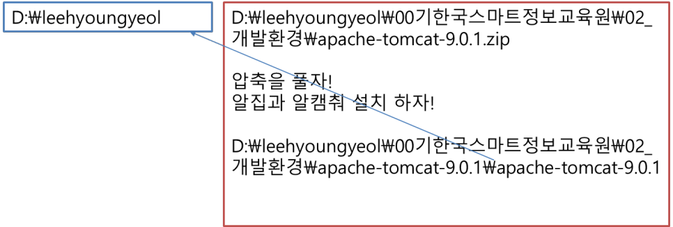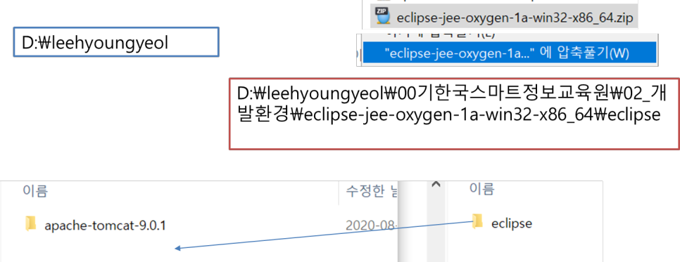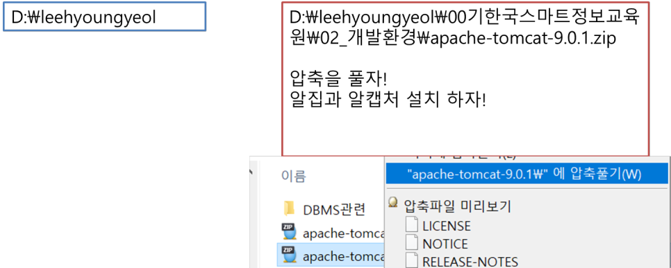 2) D:\leehyoungyeol 하위에 apache-tomcat 폴더 위치