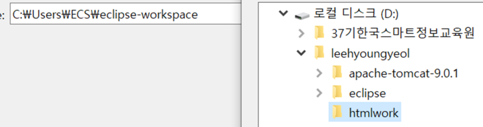eclipse 실행 후 작업공간폴더(htmlwork)선택