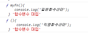 - function 키워드로 함수 선언이 가능하다.(코드 저장)