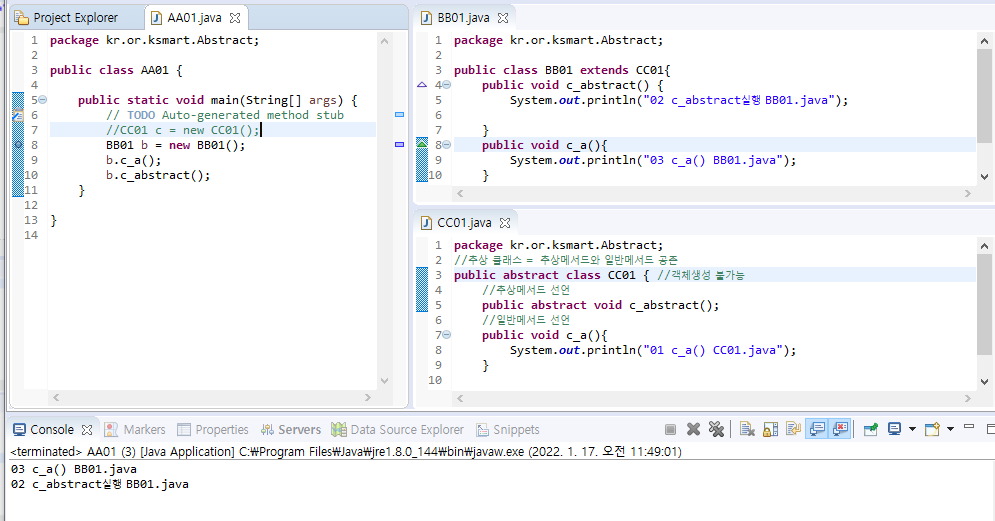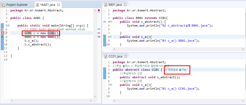 CC01 클래스는 새로운 객체를 생성 할 수 없다.//abstract 클래스여서