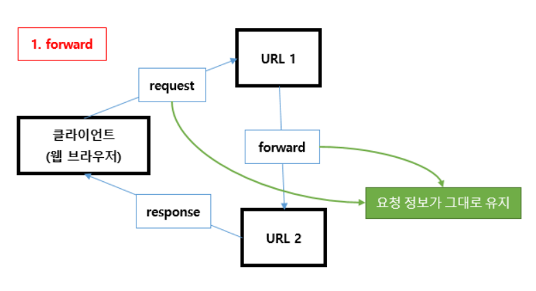 URL의 변화 영부( redirect -> 변화O , forward -> 변화X )