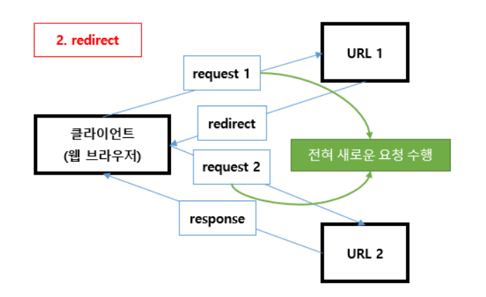 web container는 redirect 명령이 들어오면 웹브라우저에 다른 페이지로 이동하라는 명령을 내린다.