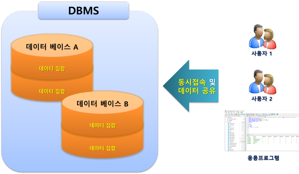 데이터베이스를 관리하며 응용 프로그램들이 데이터베이스를 공유하며 사용할 수 있는 환경을 제공하는 소프트웨어