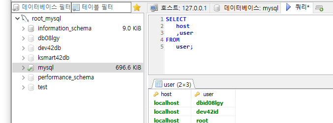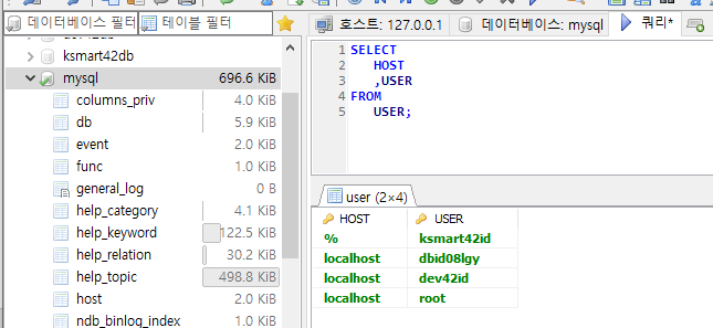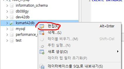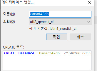 ksmart42db 데이터베이스 생성