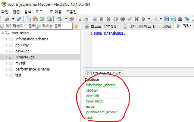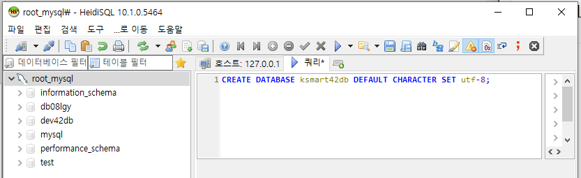 ksmart42db 데이터베이스 생성