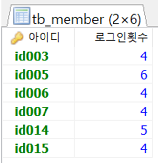 회원 별 로그인 평균 횟수보다 많이 로그인한 회원 아이디와 로그인 횟수를 조회 하시오.