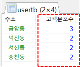 테이블 데이터 그룹 출력 조건식 – HAVING